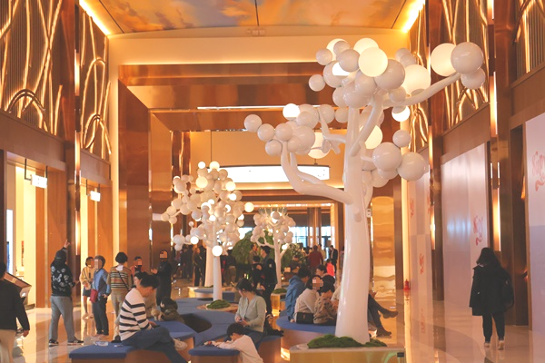 인스파이어 리조트 오로라 공간을 지나면 로툰다를 볼 수 있어요. 뒤 쪽으로는 아레나로 이어져 있고 시그니처 공간으로도 유명한데 키네틱 샹들리에가 눈을 사로잡았어요. 여기 주변으로는 팝업 행사가 열리기도 하고 CU편의점도 있어 사람들이 제일 많이 서성거리는 곳이었어요. 매시 15분과 45분에 짧은 미디어 아트 쇼를 구경할 수 있어요. 아레나에서 공연도 보게 된다면 영종도 실내 데이트 코스로 적합하다고 생각돼요.