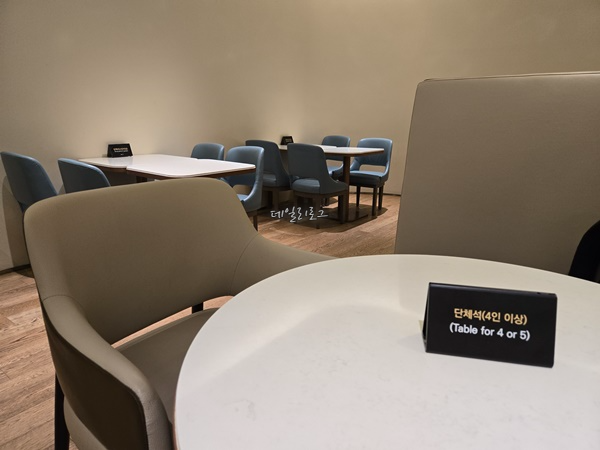 인천공항 제2터미널에 있는 마티나 라운지는 좌석이 총 203석으로 되어있어요. 2인석과 4인석이 대부분인데 1인석도 있으니 좋아요. 요즘은 혼자 여행 다니는 분들이 많으니 조용하게 즐기기 좋은 곳! 안쪽으로는 가족들이 앉을 수 있는 4인 이상의 좌석들도 있었어요. 저희는 딱 4명이라 여기 앉았는데 대부분 아이들을 데려오는 부모님이 좌석이 편해서 그런지 여기 많이 오셨어요. 유모차도 편하게 지나갈 수 있는 공간이라 더욱 굿굿!