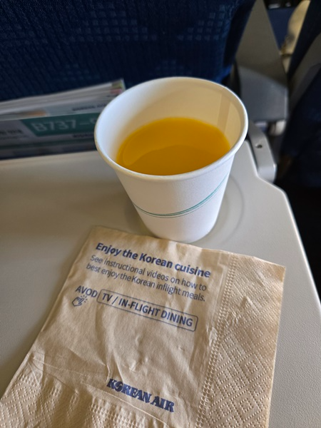 아침 7시 비행기였는데 어찌나 많은 사람들이 있는지 놀라웠어요. 심지어 평일 출발이었는데도 여행하는 사람이 이렇게 많을 줄 몰랐네요. 대한항공 내항기 탑승으로 오렌지 주스 하나 마시고 잠깐 하늘 구경하다 보니 벌써 인천 도착! 하나투어 동유럽 패키지 1일차의 여정은 부산에서 인천을 경유하고 부다페스트 공항에서 숙소로 가는 일정이에요. 저희 같은 환승객들은 부산에서 짐을 부치면 바로 부다페스트로 가기 때문에 중간에 짐을 찾을 필요 없어 편해요. 아쉽게도 내항기는 대한항공만 있어요.