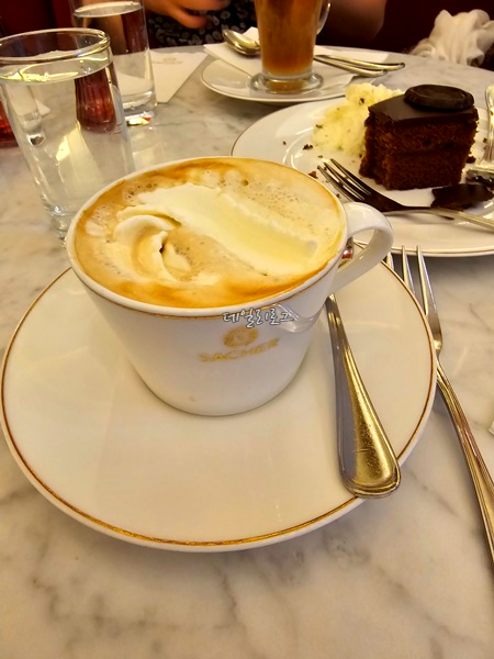 자허 카페의 자허 토르테는 초코의 달달함과 살구잼의 단 맛 조화가 괜찮았고 생크림과 곁들이니 더 어울리게 느껴졌어요. 호불호가 있는 맛이라 단맛을 좋아하지 않는 분들이라면 추천하지 않아요. 아인슈페너는 휘핑과 커피의 진한 맛이 잘 섞여 맛있었고 멜랑쥐는 개인적으론 쓰다고 느꼈어요. 독특하게도 아이스 아몬드 라떼가 있었는데 제일 맛있었네요. 아마 더운 날씨 탓이지 않을까 싶어요. 그리고 팁 문화가 있는 오스트리아여서 다 먹고 나올 때 계산하면서 2유로를 냈어요.
