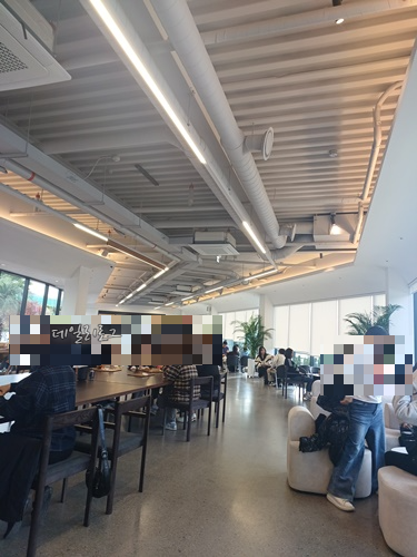 오후 4시가 넘어도 사람들이 빠질 생각이 없어서 그냥 몇 컷만 찍었는데요. 깔끔한 화이트 인테리어가 실내를 더 넓어보이게 하는 것 같았어요. 주변으로 볼 만한 뷰는 없지만 공간이 넓어 시원시원하게 느껴졌어요. 몇 개의 좌석들은 소파로 되어있어서 좀 더 편하게 쉴 수 있기도 했고 2인석, 4인석, 단체석까지 다양하게 갖춰져 있었어요.