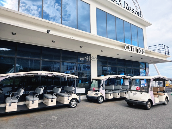 처음엔 위치를 몰라서 카트 타고 이동했어요. 입구에서 봤을 땐 마치 펜션 같은 느낌이 가득했는데 전객실이 오션뷰라고 안내받아서 엄청 기대했었어요. 외관 모습은 그저 그렇지만 내부에 들어가면 깔끔함 그 자체였어요.