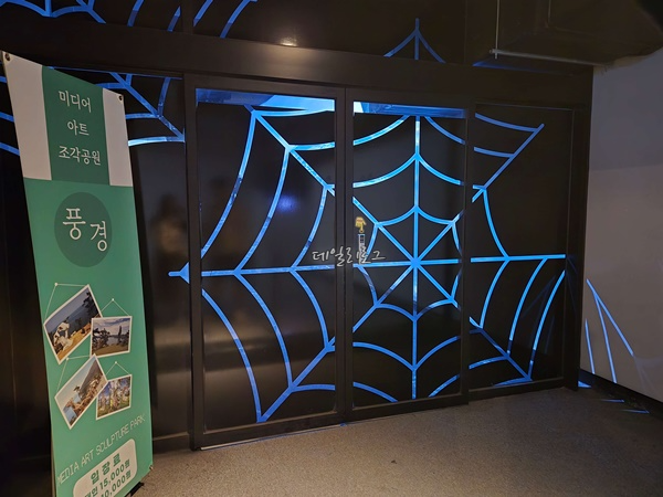 조금은 기대했던 미디어아트는 사실 실망할 정도로 짧은 구간이었지만 한쪽 벽면이 거울로 만들어져 넓게 보이는 효과와 사진 찍기 좋게 만들어져 인증샷으로는 딱이었어요. 미디어아트 조각공원의 입장료가 꽤 비싼 편이라 숙박하면서 패키지로 결제하는 게 나은 선택이에요. 그래도 조각공원까지 한 바퀴 돌고 오면 입장료가 아깝단 생각은 들지 않아요.