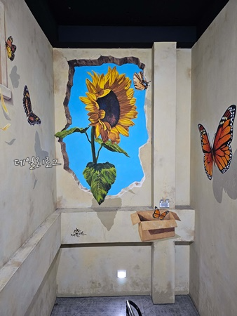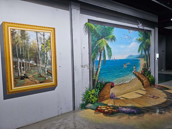 여수 예술랜드 트릭아트는 150평정도의 규모로 국내 최대라고 해요. 트릭아트를 고민하다가 들어갔는데 생각보다 재밌어서 한참을 놀다가 나왔어요. 100여 개의 작품들을 하나씩 구경하다 보면 지겨울 때가 있는데 콘셉트마다 달라지는 분위기에 지루함이 없었고 2층으로 올라갔을 때 넓은 휴게 공간이 있어 쉬면서 구경했어요.