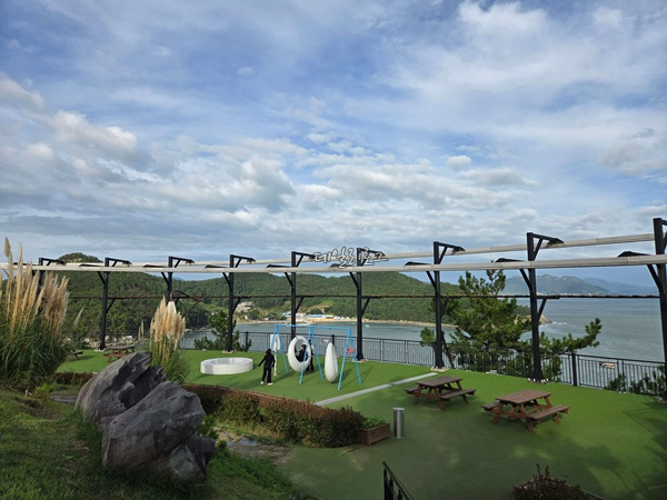 이 날은 바람 때문에 어트랙션은 중지된 상태여서 아쉬웠어요. 공중을 걷는 형태와 그네이기 때문에 안전장치가 있어도 위험하게 느껴져 아마도 중단한 것 같았어요. 바다를 보면서 공원 한 바퀴를 천천히 걸으니 잡다한 생각이 없어져서 좋았어요. 도란도란 얘기하며 다음에 또 오고 싶단 말도 잊어버리지 않았던..
