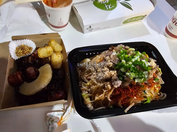 중간쯤 고민하다가 사 먹은 육전! 오~육전 매대에서 판매하는데 정말 생각지도 않았던 육전이라서 기대감 없이 먹은 거라고 해도 엄청 맛있었어요. 느끼하거나 질기지 않은 식감이 좋았고 양배추 샐러드와도 너무 잘 어울렸어요. 육전이 다 거기서 거기라는 생각이 든다면 꼭 한 번 사 먹어 보세요. 후회하지 않으실 거예요.