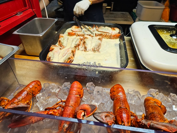 지금은 없는 것 같은 랍스터 치즈구이. 아마 꽃게버터구이로 바뀐 거 같은데 제가 먹었던 랍스타는 정말 호불호가 강했어요. 치즈가 녹으면서 랍스타랑 잘 어울릴 것 같았는데 덜 녹아서 먹기가 힘들었고 랍스타 살이 거의 없는 편에 속해서 먹을만한 게 없다는 말이 절로 나왔어요. 하지만 이 가격에 이 정도 맛을 볼 수 있는 것도 장점이고 치즈가 잘 녹아진 부분은 고소해서 먹었을 때 너무 맛있어서 호불호로 넣었어요.