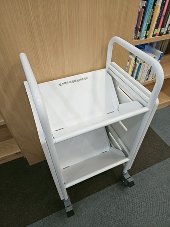 양쪽으로 위치한 도서반납함과 무인반납기. 아직 이용해 보지 않아 낯설지만 설명이 잘 나와있어서 그대로 따라 하면 돼요. 무인반납기의 경우 24시간 작동하는 것 같은데 새벽 3시부터 4시 사이에는 프로그램 재시작 때문에 이용할 수 없어요. 그럴 땐 반대편 도서반납함을 이용하시면 돼요. 물론 타 도서관 도서는 반납 안된다는 점!