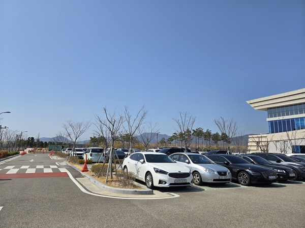 멀리서부터 보이던 공터 넓은 곳에 위치한 날렵한 건물이 바로 국회 부산 도서관이에요. 국회도서관이 서울에만 있다고 생각했는데 부산에도 있어요. 정면에서 들어오는 입구가 있고 주차장 방면에도 입구가 있어요. 여기 출입구에는 무인반납기도 있으니 반납만 하신다면 따로 들어오지 않아도 돼요.