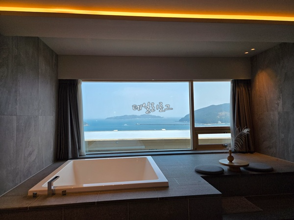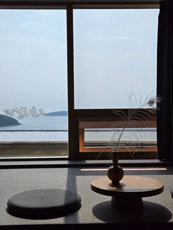들어오자마자 에어컨 작동시키고 화장실 문, 출입구 문, 창문까지 모두 열어두니 괜찮아졌는데 그래도 오션뷰 하나는 끝내주니까 그걸로 만족스러웠어요. 저희는 점심을 김밥 싸와서 객실에서 먹었어요. 유리 너머로 보이는 바다와 조용한 분위기가 마음에 들어서 객실의 습한 공기는 괜찮았어요. 그것 외에는 룸 컨디션 자체가 좋아 불편함이 없었어요.