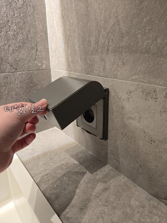 칸막이로 구분지어둔 것도 깔끔해서 좋았고 시설 자체가 고급스러워서 조심스럽게 이용했어요. 세면대 아래쪽에 여분의 수건과 드라이기가 있었는데 개인적으로 다이슨을 사용하기 때문에 꼭 필요했던 콘센트가 있어 다행이었어요. 짝꿍은 여기 드라이기 사용했는데 바람 세기도 괜찮다는 평을 남겼어요.