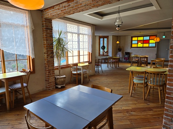 복도를 따라 걸어오면 또 다른 공간을 볼 수 있어요. 복도 끝에서 오른쪽에 있는 공간으로 좌석이 많아서 사람 많을 때도 여유있게 앉을 수 있었어요. 물론 창가자리는 다들 선점했었지만... 그래도 빛이 모든 곳에 잘 들어와서 아늑하고 따뜻하게 느껴졌어요. 2명부터 6인 단체석까지 마련되어 있던 거제 대형 카페 메리클리프.