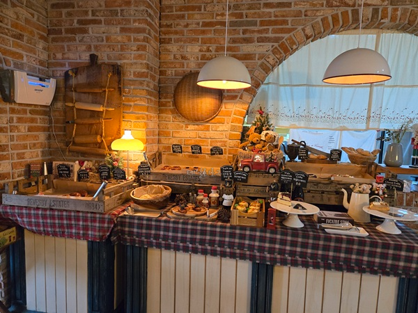 들어와서 왼쪽으로 들어오면 주문할 수 있는 카운터와 베이커리류들이 있어요. 생각보다 다양했던 종류들에 시그니처 메뉴인 딸기 크로와상, 빅토리아 케이크 등이 있으니 꼭 드셔보셔요. 맛집이라 당연히 늦은 시간에 방문하면 솔드아웃 상태예요. 음료도 시그니처인 초코나무숲 라테와 일반 커피류, 에이드류도 있어요.
