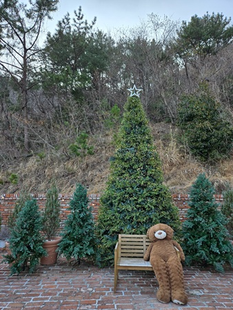 예쁜 정원을 구경하고 실내로 들어오면 테디베어가 인사해줘요. 양쪽 벽면으로 하나씩 자리 잡고 있는데 이게 바로 포토존! 실제로 보면 엄청 귀여워요. 이게 시작일 뿐, 실내 곳곳에 자리 잡은 곰인형 보실 수 있어요.