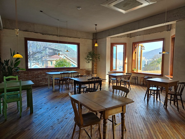 복도를 따라 걸어오면 또 다른 공간을 볼 수 있어요. 복도 끝에서 오른쪽에 있는 공간으로 좌석이 많아서 사람 많을 때도 여유있게 앉을 수 있었어요. 물론 창가자리는 다들 선점했었지만... 그래도 빛이 모든 곳에 잘 들어와서 아늑하고 따뜻하게 느껴졌어요. 2명부터 6인 단체석까지 마련되어 있던 거제 대형 카페 메리클리프.