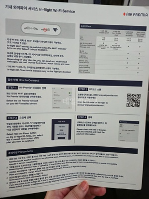 제가 탑승했던 에어프레미아 비행기는 B787-9 기종이었고 기내에서 와이파이도 가능했어요. 가격에 따라 쓸 수 있는 시간과 이미지, 카톡의 제한은 있지만 장거리 노선에서는 사용하면 좋겠단 생각이 들었어요. 1시간은 무료로 가능한데 카톡만 돼요~ 궁금해서 1시간만 무료로 써봤는데 진짜 카톡 보내지고 받는 것도 돼서 신기했어요 ㅎㅎ
