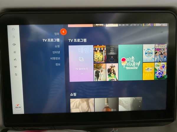 패널에는 드라마, 예능, 키즈, 음악 등이 있고 음료와 스낵, 라면을 주문할 수 있는 파트도 있어요. 모두 유료로 가능해서 승무원을 직접 부르지 않아도 선택만 하면 되더군요. 음료는 대략 5천원, 주스는 2천 원, 컵라면도 비슷한 가격이었어요. 3시간 정도 비행하기에 기내식이 따로 없어서 탑승하기 전에 먹고 오거나 유료로 주문하셔야 해요. 그래도 가격 대비 편하고 넓은 좌석이라 마음에 들었던 에어프레미아 비행기 ^^