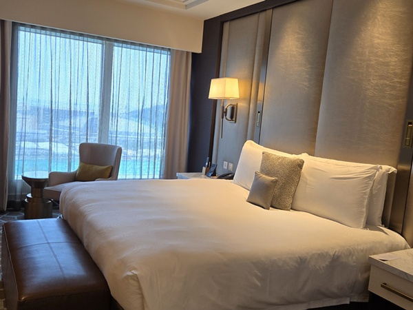 침실도 킹베드로 엄청 컸어요. 당연히 호텔의 이름만큼 침구도 고급 그 자체여서 꿀잠잘 수 있었어요. 사실 부산에서 인천을 거쳐 홍콩 공항에서 다시 마카오로 넘어오며 알게 모르게 너무 피곤한 하루였거든요. 거기에 호텔들 돌아다니며 구경했더니 힘들다는 말이 절로 나왔는데 욕조에서 몸을 따뜻하게 만들고 침대에 누워 잤더니 그대로 기절했었죠.