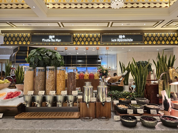 홍콩 마카오 여행에서 제일 맛있었던 걸 선택하라고 하면 당연히 마카오 파리지앵 호텔의 조식이에요. 파리지앵 호텔은 사전에 예약할 때 조식 포함으로 결제하면 [마켓 비스트로]라는 다른 곳으로 가야 해요. 하지만 대부분 르뷔페를 알고 예약하실 텐데요. 여기는 체크인할 때 추가금을 내야 한다고 안내를 받지만 저희는 스위트룸을 선택한 덕분에 무료로 이용할 수 있었어요.