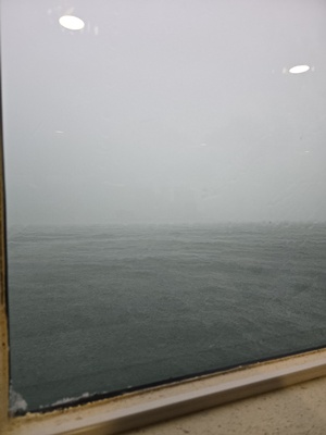 잠시 기다린 뒤 출발한 페리는 고속이라 흔들림이 크게 느껴지지 않았어요. 그래도 멀미약을 먹으니 자연스럽게 잠이 들어서 편하게 올 수 있었어요. 은근히 눈이 감기는 그런 기분.... 페리는 한 50분정도 탔고 가는 내내 빗방울과 함께여서 그런지 피난길에 오른 듯한 기분과 함께 홍콩에 도착했어요.