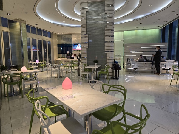 아이클럽 셩완 호텔은 2층이 프론트에요. 엘리베이터에서 내리자마자 보이는 자판기를 지나 안쪽으로 들어가면 리셉션 공간이 나오는데요. 오른쪽 사진에 어떤 사람이 서 있는 공간이 바로 체크인을 하는 곳이에요. 여기는 밤낮으로 열려있는 공간이라 아침엔 조식을 먹을 수 있고 저녁엔 라면을 먹거나 맥주를 마시는 사람들을 볼 수 있었어요. 물론 야외공간도 있답니다.