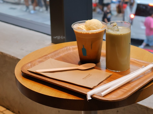 드디어 시원하게 마실 수 있는 음료가 나왔어요. 블루보틀에도 사람이 엄청 많아서 제법 기다렸어요. 내부에 자리가 많은 편은 아니어서 자리를 먼저 잡고 주문을 해야 했는데 1층에서 주문했어요. 홍콩 센트럴 블루보틀에는 외부에도 자리가 있지만 몇 개 없어요. 생각보다 로테이션은 잘되서 잠깐이라도 기다릴 수 있다면 기다리는 것도 좋은 방법이에요.