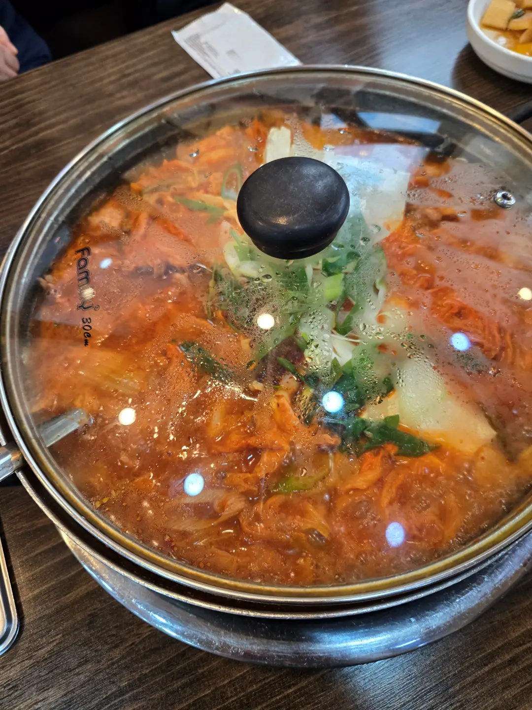얼마 지나지 않아 맛있는 냄새와 함께 끓여지는 찌개! 시골통돼지볶음 양산물금점에 나오는 찌개는 양도 푸짐하지만 들어가는 재료도 많은 편이라 4명이서 먹고도 충분해요. 여기에 사리까지 넣는다면 최고~ 5분정도 끓여서 김치랑 국물은 어느정도 맛이 나지만 여기서 조금 더 끓이면 찐으로 맛있는 김치찌개를 맛볼 수 있어요. 고기까지 완벽하게 익어줘야 제 맛이 나거든요.