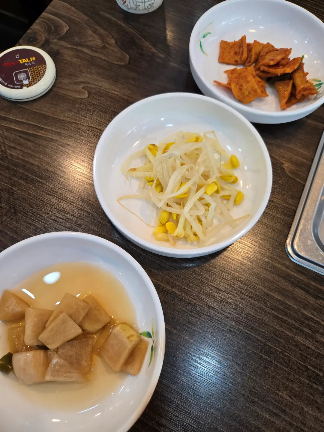 시골 통돼지볶음 양산물금점의 기본 반찬들은 어묵볶음, 콩나물 등 2인 기준으로 1개씩 나와서 4명이서 오면 양쪽으로 세팅돼요. 김치찌개에 빠질 수 없는 반찬인 김은 나중에 밥이 나오면 비벼 먹어줘야 해요! 개인 취향이라 저희는 비벼서 먹는데 부모님들은 따로 덜어 드시더군요.