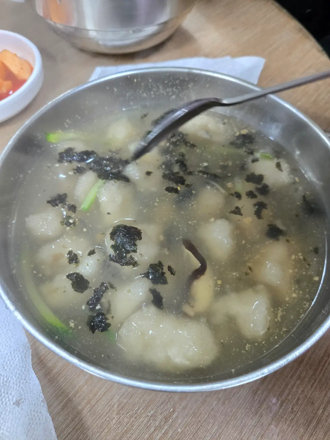 옹심이라는 걸 처음 먹어봐서 그런지 어색했는데 너무나 쫀득한 식감에 놀라웠어요. 부모님은 다른 집과 다르게 확실히 감자 100%가 들어간 것 같다고 하셨어요. 저는 처음 먹으니 잘 모르겠지만 식감을 생각하면 쫀쫀하면서 단단하니 아마 그 말이 맞다고 생각되네요.