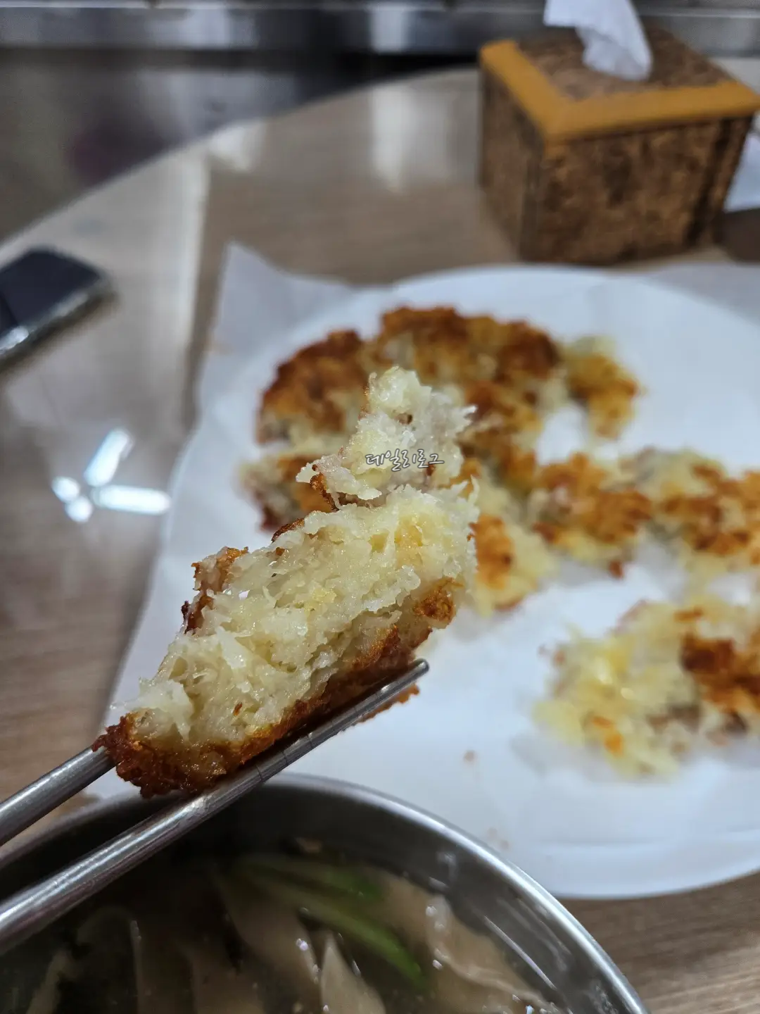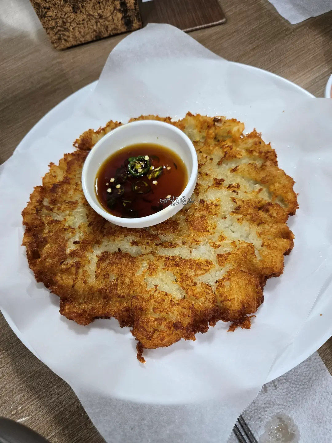 태백 맛집 부산감자옹심이에 오면 무조건 먹어봐야한다는 감자부침은 두께부터 달랐어요. 이 정도의 감자부침을 만들려면 대체 감자를 얼마나 깎아야 할까요? 두께도 두께지만 노릇하게 잘 구워져 보기에도 좋고 식감도 겉바속촉!! 맛있다는 표현보다 이게 진짜 감자부침이구나!라는 말이 더 어울렸어요. 이걸 적는데도 먹고 싶은....