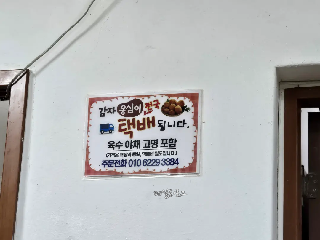 포장도 가능한 태백 맛집 부산감자옹심이! 여기는 메뉴가 5개밖에 없어요. 부산감자옹심이 맛집의 가격은 옹심이칼국수 9,000원 , 장칼국수 9,000원, 메밀칼국수 8,000원, 옹심이 10,000원, 감자부침 10,000원이었어요. 대부분 옹심이칼국수를 드시는 편이라 저희도 옹심이칼국수 2개, 옹심이 1개, 감자부침 1개를 주문했어요. 양이 제법 많다고 들어서 메인 메뉴는 3개만 주문했는데 탁월한 선택이었어요.