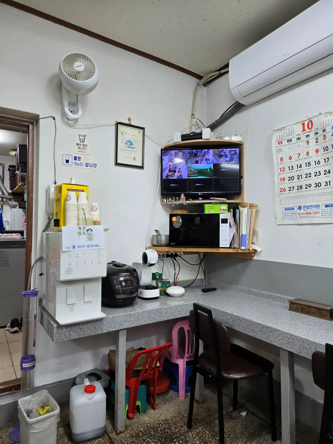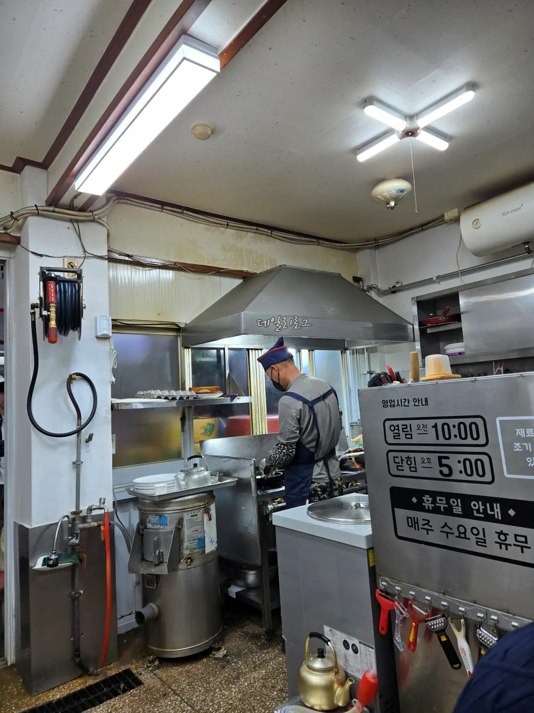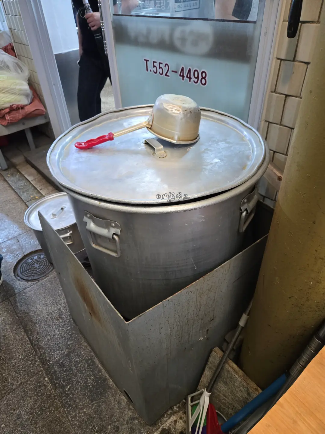 입구에 들어오면 이정표가 바로 보이는데요. 이정표 따라 원하는 맛집을 찾아갈 수 있어요! 저희는 부산감자옹심이로 직행했지요. 도착해보니 벌써 몇몇의 사람들이 가득했는데 웨이팅은 금방 빠졌어요. 내부가 넓진 않아도 몇 개 없는 메뉴라 그랬던 것 같아요. 가게 바로 앞 큰 솥에서 국물을 우려내시는데 냄새가 너무 좋았어요.