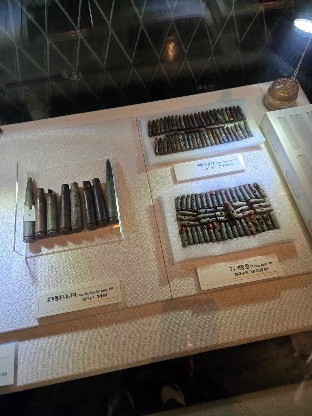 DMZ 박물관 1층에는 조금은 어두운 배경이여서 가족 단위의 방문객들에게는 주의가 필요해요. 전시 주제가 아무래도 전쟁이다 보니 학생을 동반하는 부모님들이 제법 되었어요. 단체 관광객보다는 개인 위주로 전시를 살펴보는 분위기가 강했고 조용하고 차분한 분위기가 인상적이었어요.