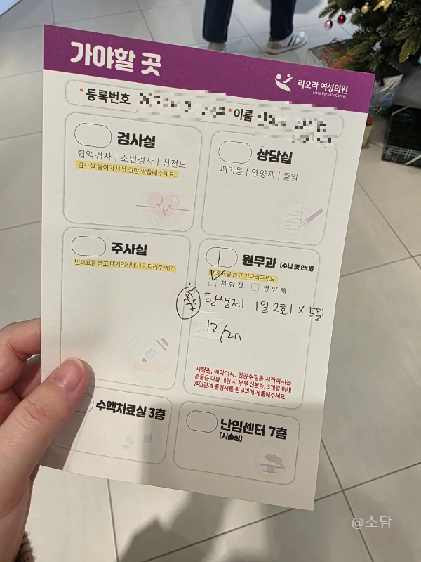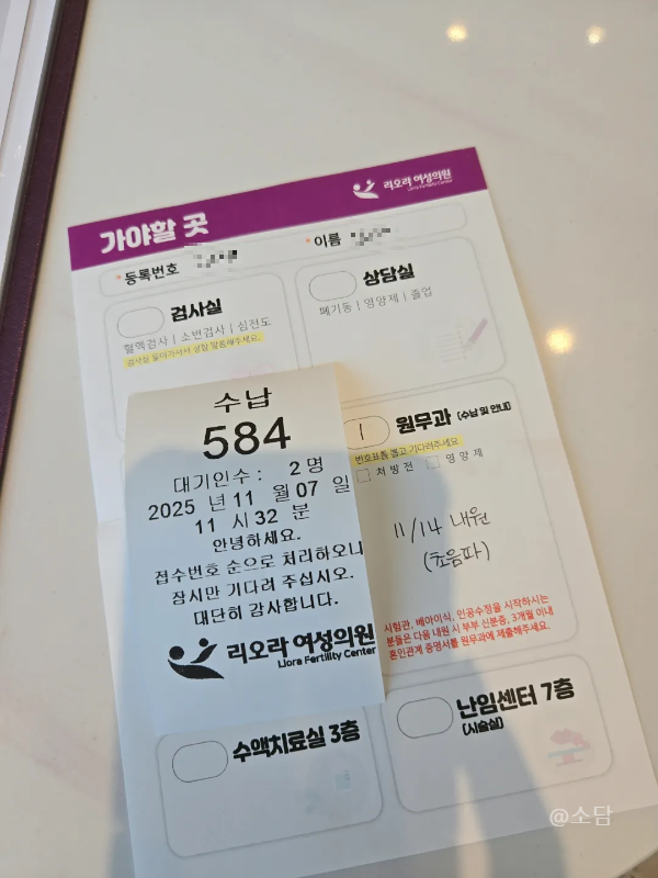 초진은 무조건 카카오톡이나 전화로 예약을 잡아야 하고 선생님의 일정에 맞춰야 한다. 리오라 여성의원 초진은 3주 정도 걸렸고 선생님에 따라 기다리는 일정은 달라진다. 기다렸던 초진날짜에 선생님을 만났는데 내가 이해하고 따라갈 수 있게 설명을 해주셨고 그동안의 시술 이력과 현재 몸 상태를 중심으로 얘기를 나누었다.