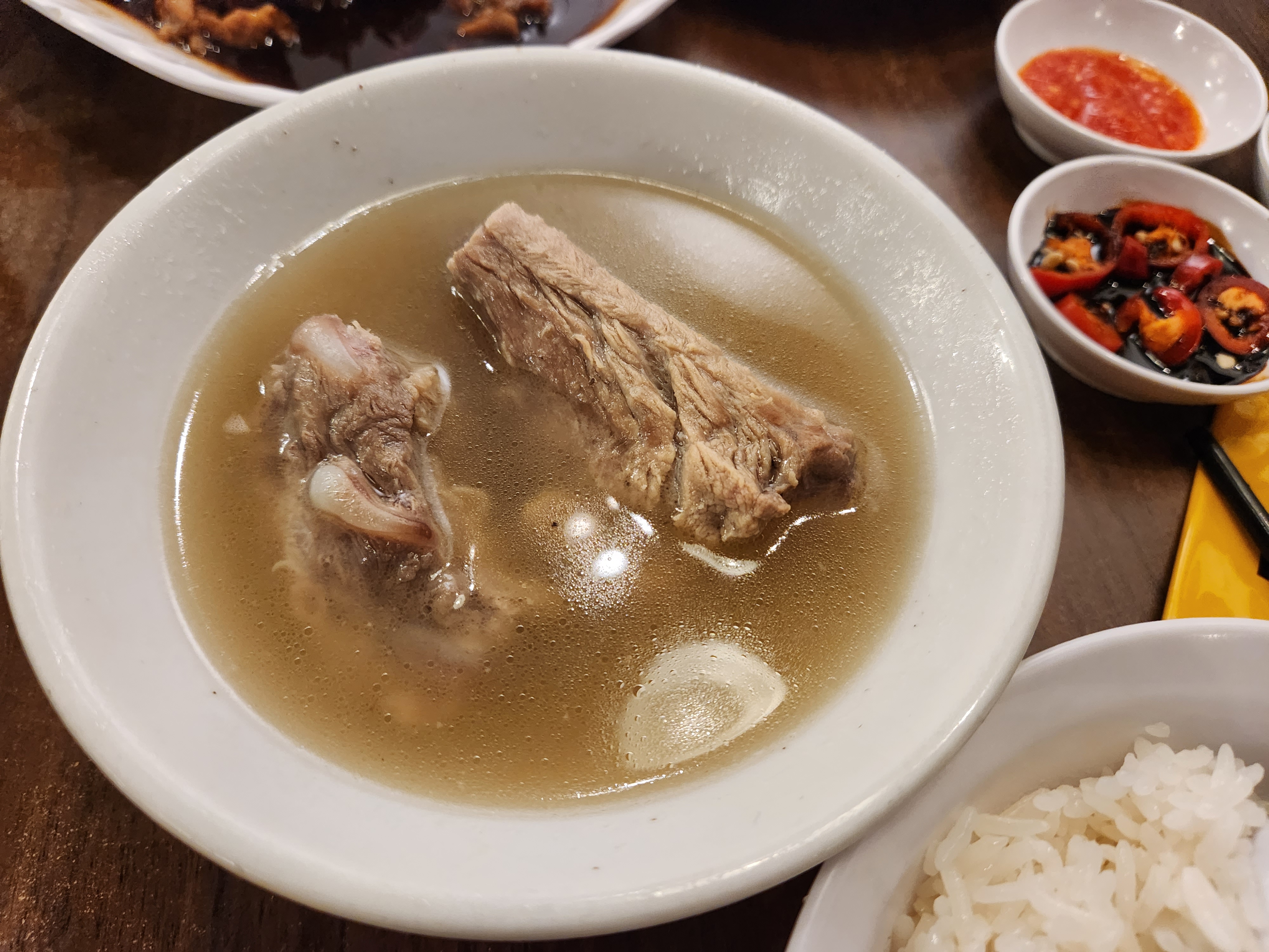 우리나라 갈비탕과 비슷한 느낌인데 국물에 돼지갈비가 들어 있는 거예요.
