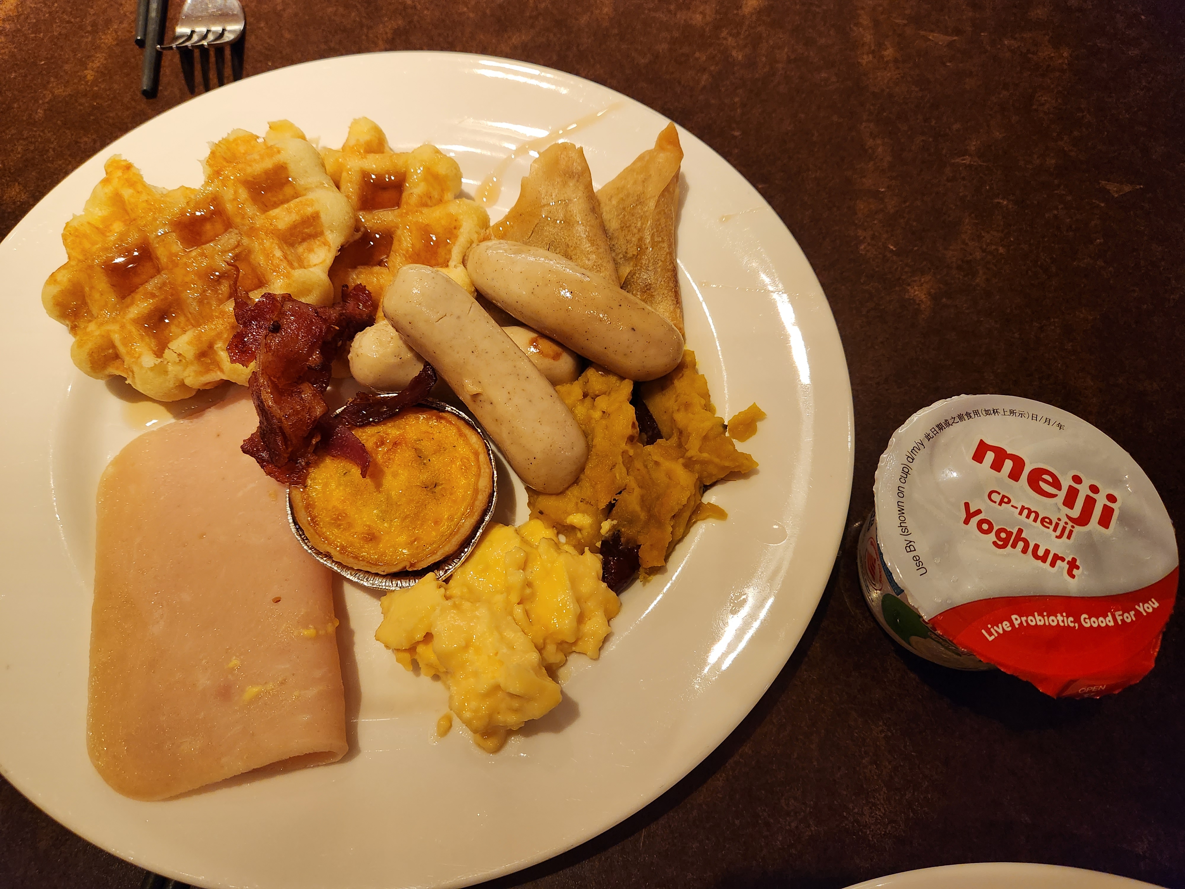콥튼킹스호텔의 조식은 작은 규모의 식당에 간단하게 차려져 있었어요. 음식은 대체로 짠 편이었고 음료도 두 세개 정도? 시리얼 있었고, 샐러드도 1종류 있었어요. 4성급 치고는 음식이 다양하지 않았지만 아침으로 먹기엔 괜찮았어요.