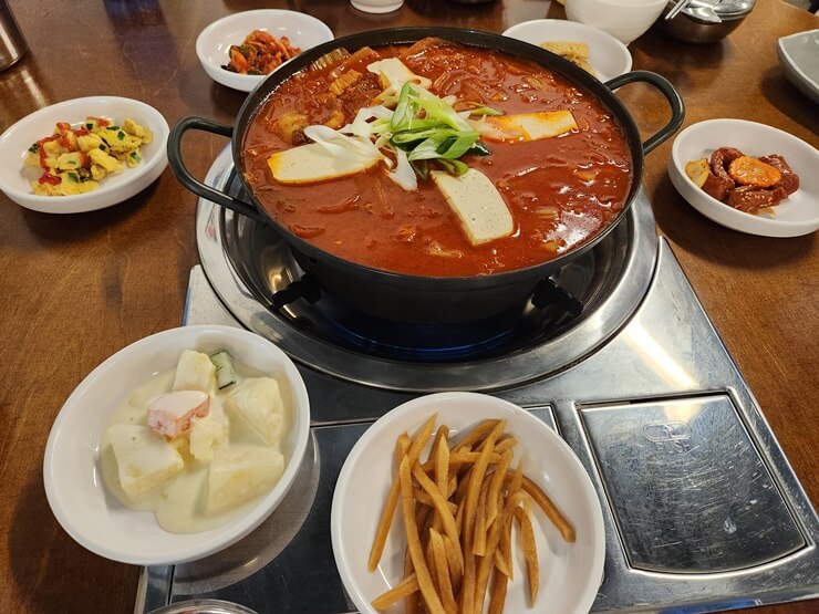 저녁은 한식이었어요. 내일 한국 가니까 마지막으로 주는 음식인데 한식이라니~~~~~ 아주 달달한 김치찌개와 달달한 제육볶음을 먹었는데 여기서 짠 음식들을 먹어서 그런지 의외로 단 게 땡겼어요. 한국인이 하는 식당이라 인기 많다고 하던데 인터넷 검색하니까 제법 맛집으로 소문난 곳이었어요!