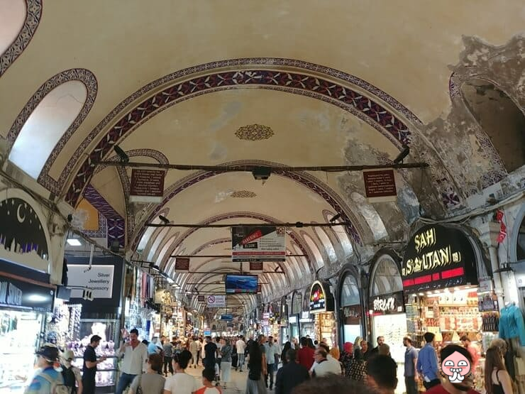 여기서 저렴하게 환전도 가능하고 재래 시장이다 보니 현금을 주로 써야 하는 곳이랍니다. 그래서 저희도 일부러 현금을 남겨둔 것도 있었어요. 모자란 분들은 여기서 환전해서 쓰셨어요. 엄청 넓어서 메인 스트리트 외의 다른 골목길들은 들어가기가 애매했어요. 길을 잃을까 걱정됐거든요. 15개의 돔으로 구성되어졌고 반원통형 천장이 특징인 그랜드 바자르는 오픈 시간에 맞춰 오지 않으면 물건이 없거나 많은 관광객들에게 치인다고 해요.