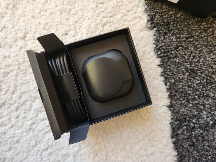 구성은 심플해요. 이어폰 본품, 충전선, 설명서, 여분의 이어팁까지 들어있는데 충전선이 조금 아쉬웠어요. C-C타입이라 결국 충전기는 구매하라는 뜻이니까요. 저는 핸드폰 구매할 때 빠른 충전용으로 C-C타입을 구매했던 터라 그걸로 같이 충전하고 있지만 그렇지 않은 분들은 따로 사야 하니 번거로울 것 같아요.