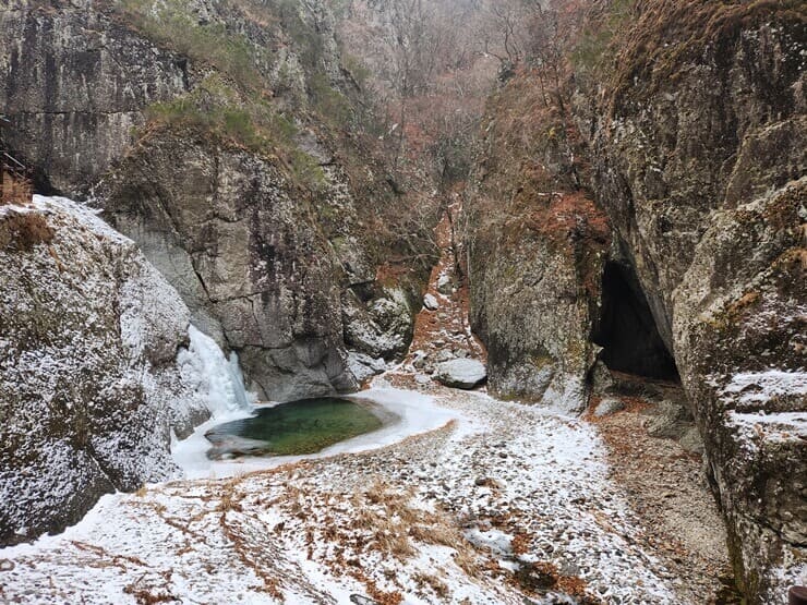 혹시나 등산길이 빙판길일까 걱정했지만 다행이 괜찮았어요. 사람들이 다니는 길은 미끄럽지 않았고 그 외의 길들은 눈이 그대로 있었어요. 특히나 강은 아예 얼어붙었거나 이제 막 녹기 시작한 곳들이 있었어요. 겨울 등산은 처음이라 이런 풍경도 저희에겐 좋았고 무엇보다 공기가 맑아 숨쉬기가 편했어요.