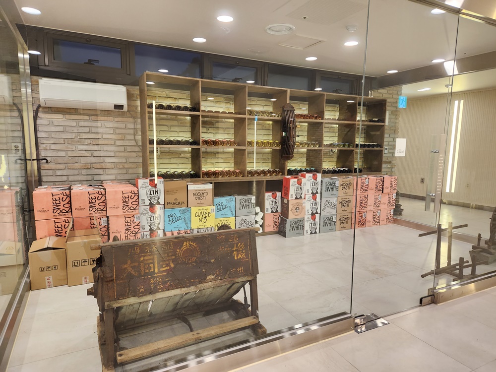 여기는 3층 와인셀러에요. 1층 프론트에서 와인을 구매하는 분들에게 제공되는 공간이라 닫혀있었어요. 전면이 유리라 작은 공간이지만 다양한 와인을 구경할 수 있었던 곳.