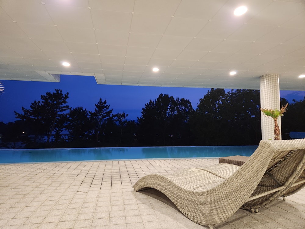 다 먹고난 뒤 그대로 객실로 들어가긴 아쉬워서 부대시설들 구경하러 다녔어요. 루프탑부터 한 층씩 내려오면서 구경했고 석식 같이 먹었던 분들도 그렇게 구경하시던... 저녁 되니까 찬 바람이 불었는데 커피 한 잔 곁들였다면 더 좋았을 걸, 하는 생각이 들었어요.